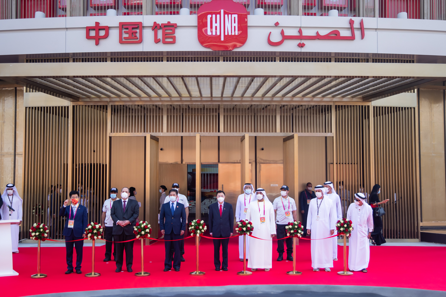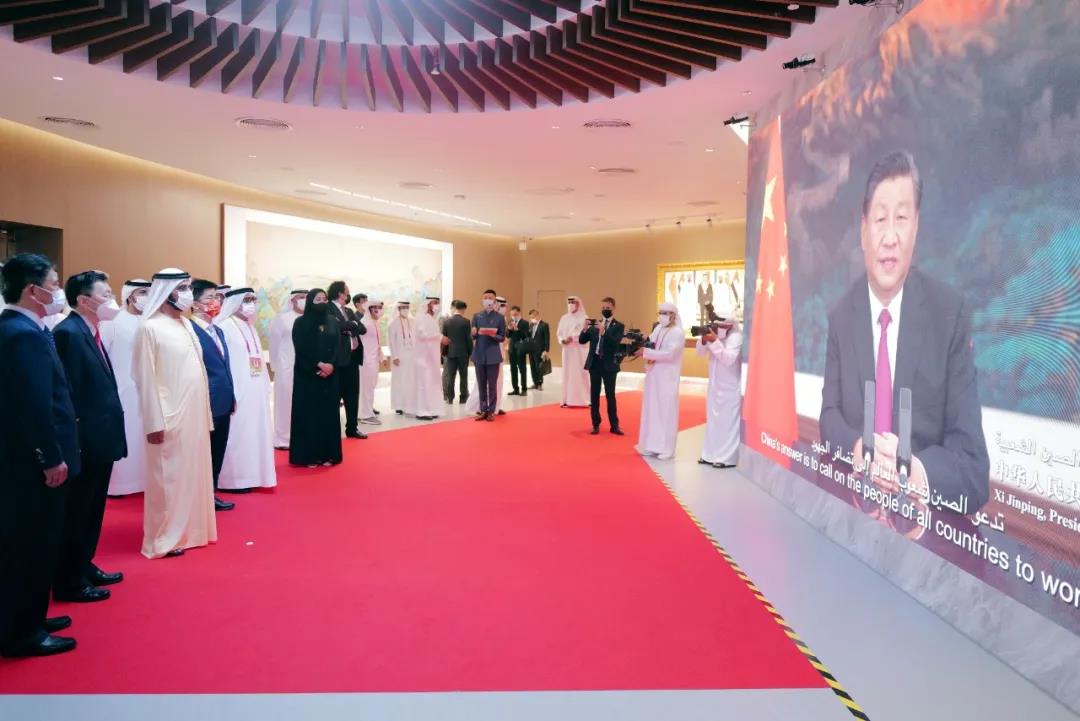 运动现场,首先播放了习近平主席为中国馆揭晓的视频致辞,之后部分嘉宾揭晓简短致辞。迪拜世博会中国馆政府总代表、中国国际商业增进委员会副会长张慎峰,中国驻阿联酋大使倪坚,中国驻迪拜总领事李旭航,国际展览局秘书长迪米特里·科肯切斯,阿联酋航空公司主席兼董事长赛义德·阿勒马克图姆,迪拜警员局总司令阿卜杜拉·迈利等中外嘉宾悉数出席。随后,出席仪式的嘉宾为中国馆剪彩并巡馆。